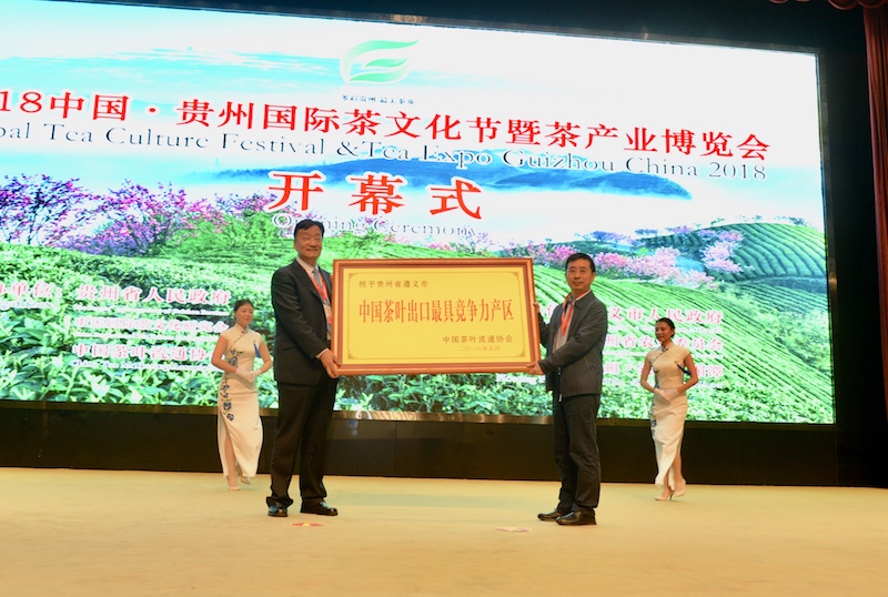 在簡約隆重、氣氛熱烈的開幕式上,遵義市委龍長春書記、聯合利華北亞區曾錫文副總裁、國際茶商代表以馬利·貝特·凱穆泰先後緻辭。随後,中國茶葉流通協會會長王慶發布《新時代貴州省産業之競争力》并為獲得首批“中國制茶大師”(綠茶類)殊榮的貴州湄潭綠之源茶業銷售有限公司劉建輝、黔南州都勻茶場副場長歐平勇兩位大師頒發了證書。接着,王慶會長與周國富會長先後向遵義市和湄潭縣頒發了“中國茶葉出口最具競争力産區”、 “中國茶工業博物館”匾牌。最後,貴州省委副書記、省長谌贻琴發表講話,并宣布2018中國·貴州國際茶文化節暨茶産業博覽會開幕。