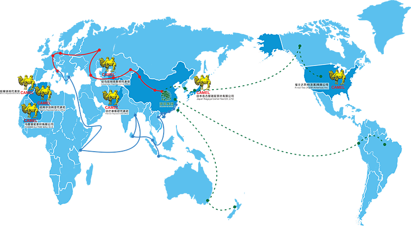 在日本、馬裡、摩洛哥等茶葉主銷區建立了5個駐外機構,在美國、烏茲别克斯坦設立營銷機構,目前公司的茶葉出口到六十多個國家和地區。
